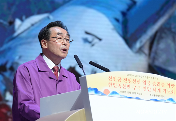 ±è¼Áß ±âÀÚ / 2024³âÀ» ¸¶¹«¸®Çϰí 2025³â »õÇØ¸¦ ¸ÂÀÌÇÏ¿©, ¼¼°èÆòÈÅëÀϰ¡Á¤¿¬ÇÕ(ÀÌÇÏ °¡Á¤¿¬ÇÕ)Àº ¡®Ãµ¿ø±Ã õÀϼºÀü ÀԱà ½Â¸®¸¦ À§ÇÑ ÇѹÎÁ·¼±¹Î ±¸±¹ ¿ø´Ü ¼¼°è ±âµµÈ¸¡¯¸¦ °æ±âµµ °¡Æò¿¡ À§Ä¡ÇÑ Ã»½ÉÆòÈ¿ùµå¼¾ÅÍ¿¡¼ ¼º´ëÈ÷ °³ÃÖÇß´Ù. À̹ø ±âµµÈ¸´Â ´ëÇѹα¹ÀÌ ÃÖ±Ù ºñ»ó°è¾ö°ú źÇÙ»çÅÂ, ±×¸®°í ±¹³» ¿©°´±â »ç°í µîÀ¸·Î ÀÎÇÑ Á¤Ä¡Àû ¹× »çȸÀû È¥¶õÀ» °Þ°í ÀÖ´Â °¡¿îµ¥, ±¹¹ÎÀÇ ´ÜÇÕ°ú Ä¡À¯¸¦ ±â¿øÇϱâ À§ÇØ ¸¶·ÃµÇ¾ú´Ù.