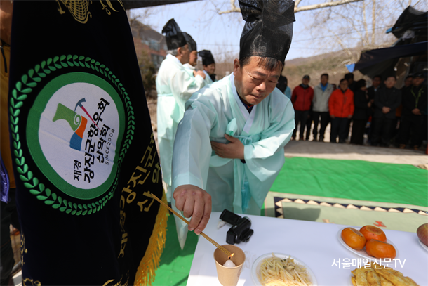 °­Áø»ê¾ÇȸÀÇ ÀüÅëÀ¸·Î À̾îÁ® ³»·Á¿À´Â ½Ã»êÁ¦´Â »ê¾ÇÀεéÀÌ ÇÑ ÇØ µ¿¾ÈÀÇ ¹«»ç¾ÈÀüÀ» ±â¿øÇÏ°í ¼­·ÎÀÇ ¾ÈºÎ¸¦ È®ÀÎÇϸç È­ÇÕÀ» ´ÙÁö´Â ÀÇ¹Ì ÀÖ´Â Çà»ç·Î ÀÚ¸®Àâ°í ÀÖ´Ù. ¿ÀÁ¤Èñ ±ºµ¿¸éÇâ¿ìȸÀåÀÇ Á¤¼º½º·¯¿î Àç°ü ¾Æ·¡, ÃÊÇå·Ê, ¾ÆÇå·Ê, Á¾Çå·Ê, À½º¹ÀÇ ¼ø¼­·Î ÁøÇàµÈ Á¦·Ê´Â ¾ö¼÷ÇÏ°í °æ°ÇÇÑ ºÐÀ§±â ¼Ó¿¡¼­ ÀÌ·ç¾îÁ³´Ù. Á¦´Ü¿¡´Â »ê½Å·É²² ¹ÙÄ¡´Â °úÀÏ, ¶±, ¼ú µî Á¤¼º½º·´°Ô ÁغñµÈ Á¦¹°µéÀÌ °¡Áö·±È÷ ³õ¿© Âü¼®ÀÚµéÀÇ ¸¶À½À» ¸ð¾Ò´Ù.
