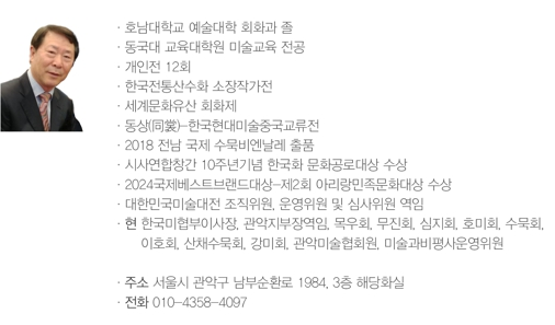 ±è¿µ¼ø È­¹éÀº È£³²´ëÇб³ ¿¹¼ú´ëÇРȸȭ°ú¸¦ Á¹¾÷ÇÑ ÈÄ, µ¿±¹´ëÇб³ ±³À°´ëÇпø¿¡¼­ ¹Ì¼ú±³À°À» Àü°øÇϸç Àü¹®ÀûÀÎ ¿ª·®À» Ű¿ö¿Ô´Ù. ±×´Â °³ÀÎÀü 12ȸ¸¦ Æ÷ÇÔÇØ Çѱ¹ÀüÅë»ê¼öÈ­ ¼ÒÀåÀÛ°¡Àü, µ¿»ó-Çѱ¹Çö´ë¹Ì¼úÁß±¹±³·ùÀü µî ¿©·¯ Àü½Ãȸ¿¡ Âü¿©ÇÏ¿© ±× ¿¹¼ú¼ºÀ» ÀÎÁ¤¹Þ¾Ò´Ù. ƯÈ÷, 2018³â Àü³² ±¹Á¦ ¼ö¹¬ºñ¿£³¯·¹¿¡ ÃâǰÇÏ¿© Çѱ¹ ÀüÅë ¹Ì¼úÀÇ Çö´ëÀû ÇØ¼®À» ¼±º¸À̸ç ÁÖ¸ñÀ» ¹Þ¾Ò´Ù.